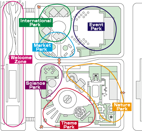 With the thme of nature,this area includes the Environmental Park which introduces the structure by which plants clean the air,the European Garden which brings back a representative European garden,the Floral Restaurant,and more.