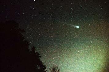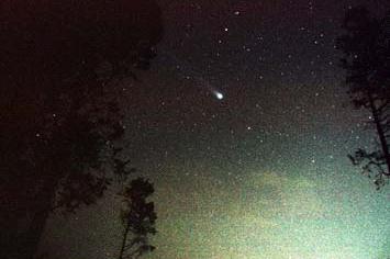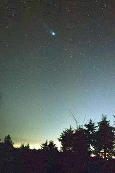 昔、ハレー彗星も見に清里まで行ったけれど、それよりもはるかに大きく見える。 カメラを取り出し、すかさずゲット! 残念ながら、彗星の仰角が高すぎて、地上の風景まで入れられなかった。 うーむ、いまいち。