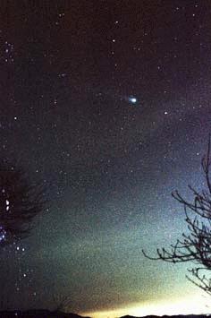 話題の彗星を見に野辺山までいってきました。 私は東京都調布市に済んでいるのですが、そこから(天文観測のメッカ)野辺山 までは中央高速をとばして170Kmほど離れています。 月曜の夜は東京は曇っていたのですが、野辺山方面は晴れており、彗星がとても 良く見えたという、某横浜方面からの情報によりはりきって出かけたのです が・・・ 行けども行けども空は曇り。 きっと晴れる、きっと晴れるとマントラを唱えながら運転していたのですが、 神は私を見放したのか・・・(とっくに見放されているという噂もある) 途中のラジオでは、今日は九州をのぞいて日本全国良く晴れており、東京でも 彗星が見えていますなどと放送していたのですが・・・